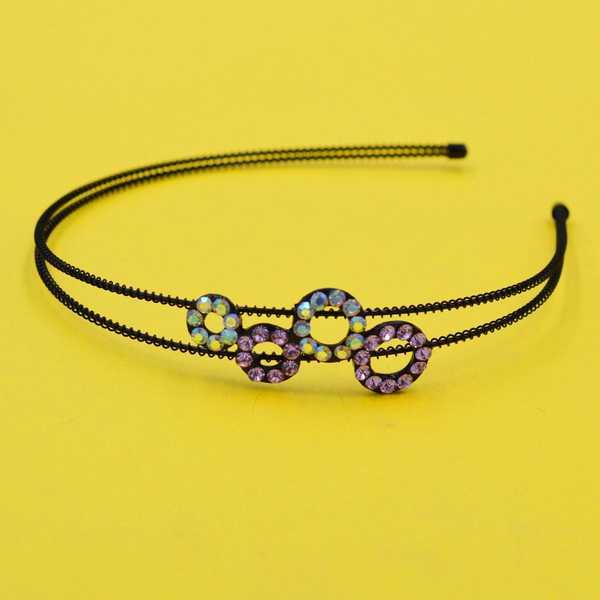 Обруч для волосся, чорний метал, колір страз: рожевий, бузковий, синій, бірюзовий, білий — на вибір, ширина 12 мм. Ціна за 1 шт.