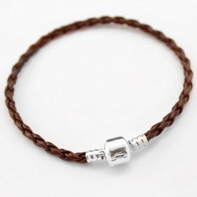 Основа для браслета Пандора, штучна шкіра та латунь, розмір 3х205 мм, Колір: коричневий (1 шт.)